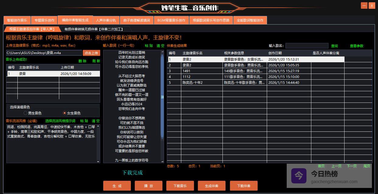 《妙笔生歌》作为一款国产优秀的AI智能创作音乐软件,宛如一颗耀眼的新星,在音乐创作领域绽放着独特的光芒。它具备众多强大的功能,全方位助力原创音乐人快速高质量地创作歌曲。