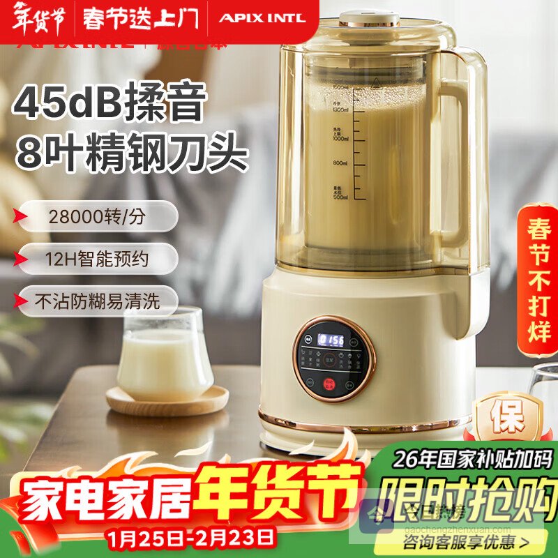 【京东自营】APIXINTL安本素破壁机低音家用多功能降噪豆浆机料理机辅食机榨汁机全自动免煮五谷杂粮¥