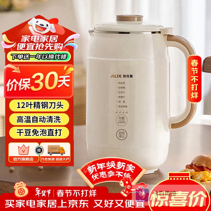 【京东自营】奥克斯豆浆机破壁机2-3人用免滤多功能大容量家用快速浆轻音破壁一键自清洗干豆免泡直打S6¥