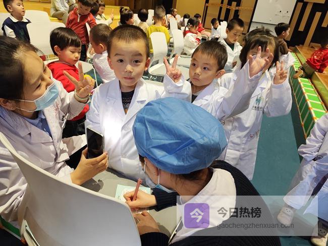 活动中,小朋友们穿上白大褂,变身“迷你牙医”,在医生指导下互相检查牙齿,在游戏中消除对看牙的恐惧,种下爱护牙齿的种子。