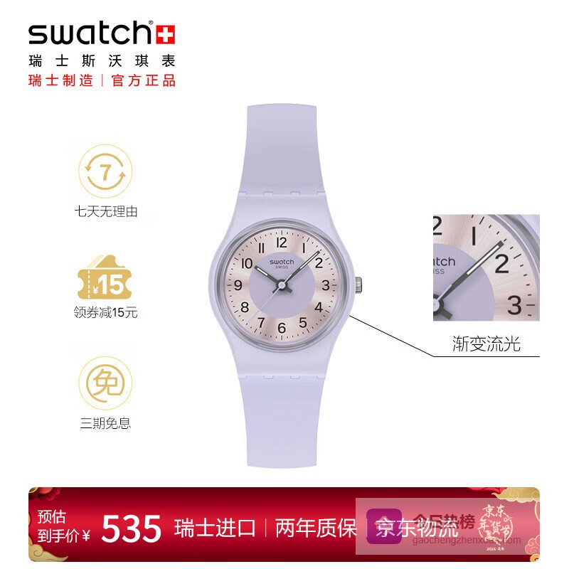 斯沃琪(Swatch)瑞士手表 lady系列 新年礼物石英表 初高中考试表 淡紫流光LV121¥