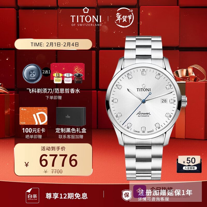 梅花(Titoni)瑞士手表 男士机械表 空中霸王系列 钢带进口腕表83743-S-581礼物¥