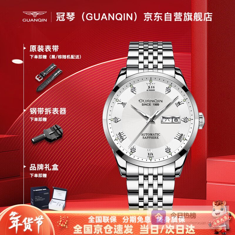 冠琴(GUANQIN)手表男士机械表 瑞士认证全自动商务名表 十大品牌防水多功能男表¥