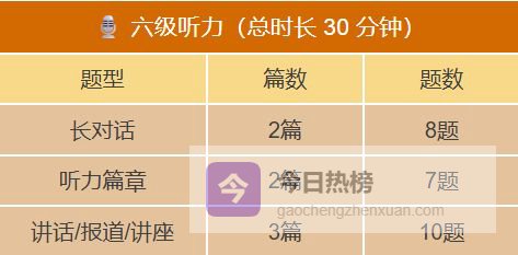 六级语速更快(140–160词/分钟 vs 四级120–140词/分钟)、每题答题时间更短(13秒 vs 15秒)、考试时长更长、每篇词汇量更大。六级听力难度全面升级!