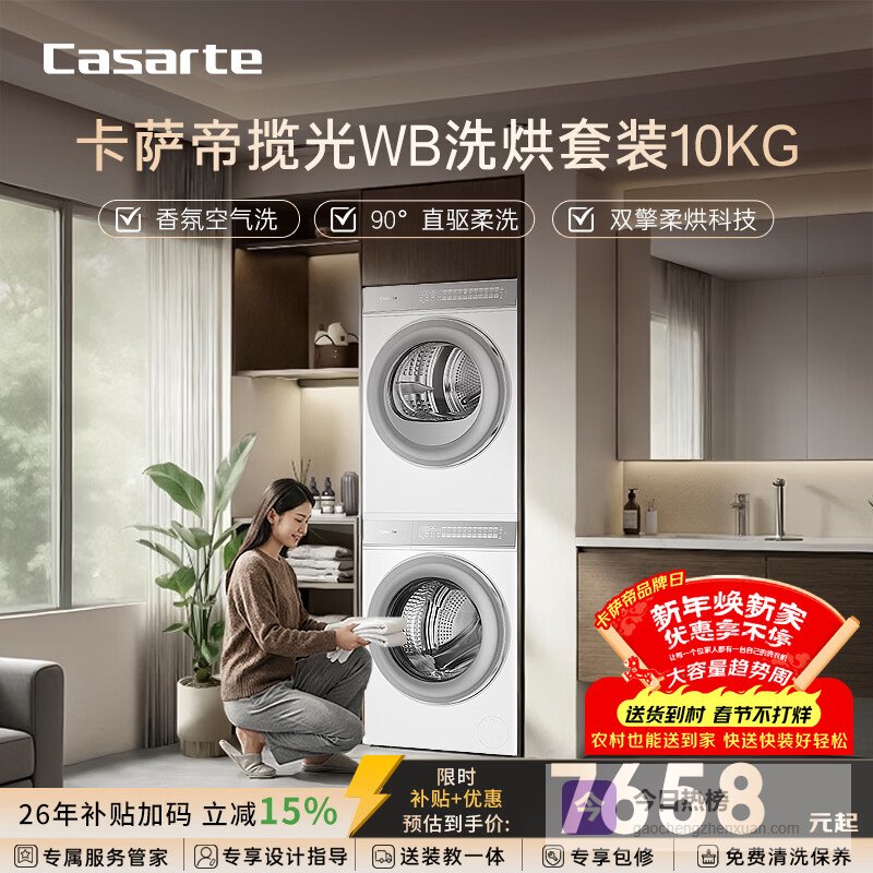 【京东自营】卡萨帝揽光WB洗烘套装10KG滚筒洗衣机全自动+10KG双擎热泵烘干机?家电国家补贴15¥