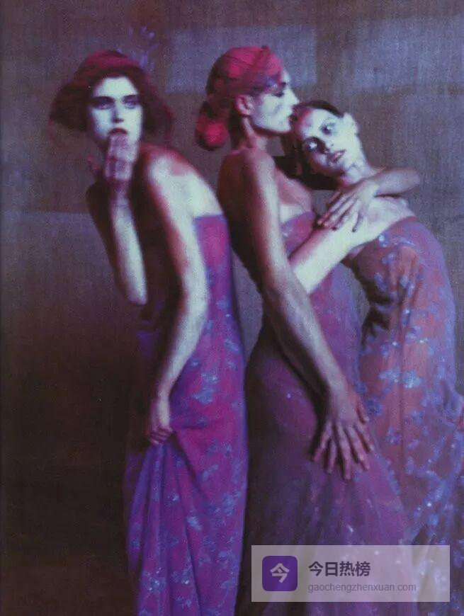 迷人的微闭双眼、柔和的脸庞、慵懒的头饰、白皙肌肤、层层荷叶边领口、松软裙摆……两个女人仿佛一人又似两人,在低饱和梦境里缓缓融化。你没有意识到,就在分神的几秒里,意识已悄悄切换到潜意识频道。