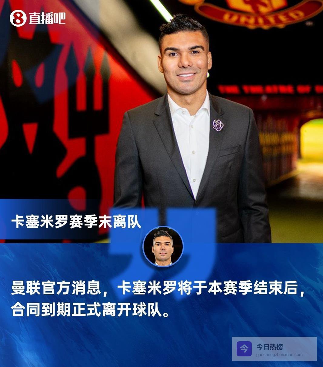 在曼彻斯特,34岁的巴西中场卡塞米罗也将以自由身离开曼联。 俱乐部没有激活其合同中的续约选项,他将在今夏正式离队。 本赛季他仍能贡献关键进球和防守,高昂的薪资成为俱乐部财政改革的负担。