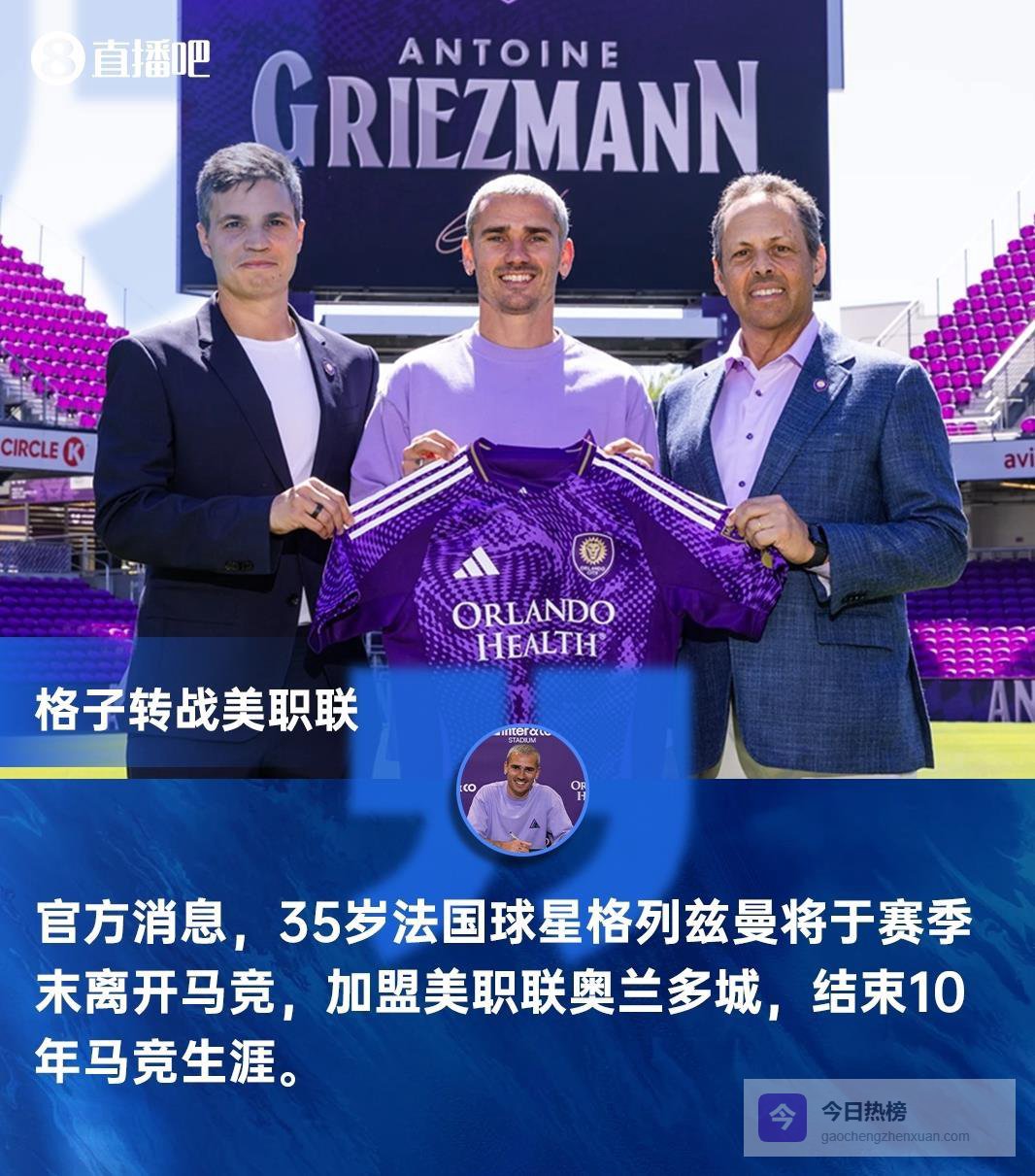 与此同时,马德里竞技也送别了他们的旗帜。 35岁的法国前锋安托万·格列兹曼已正式加盟美职联奥兰多城,合同从2026年7月生效,持续至2027-28赛季。 这意味着他十年的红白生涯即将画上句号。