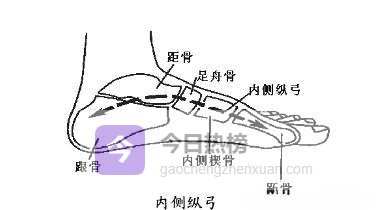 2.1 ◆ 内侧纵弓:弹性担当由跟骨、距骨、足舟骨与第1~3跖骨组成, 最高点落在距骨头,像一根拉满的弓弦,活动度大、弹性足,是足部“动力系统”的核心。