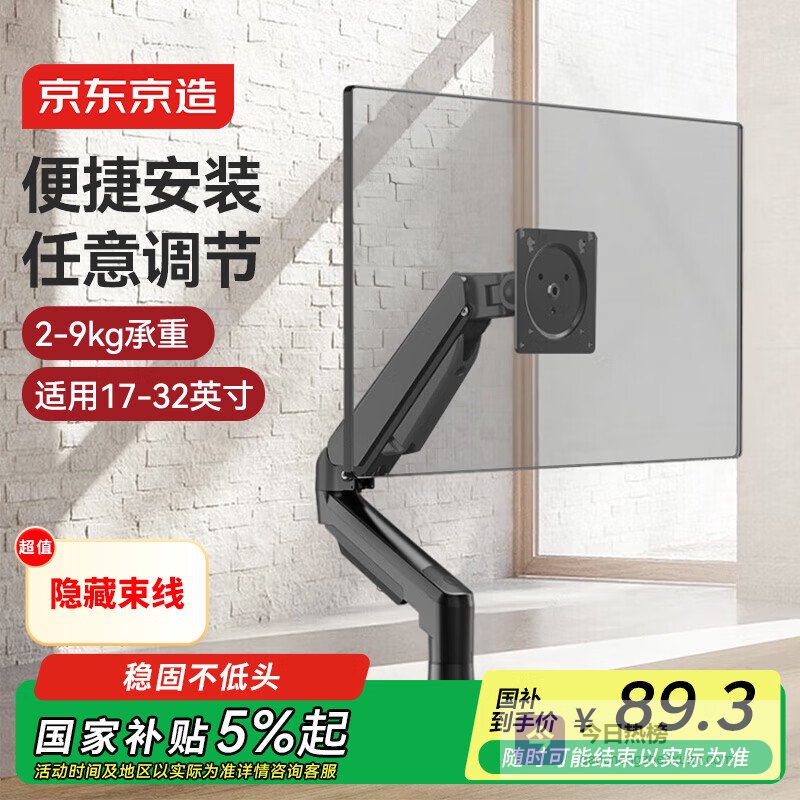 【京东自营】京东京造显示器支架机械臂电脑支架桌面夹式底座屏幕升降增高架JZ-ZJ01黑17-32吋悬¥