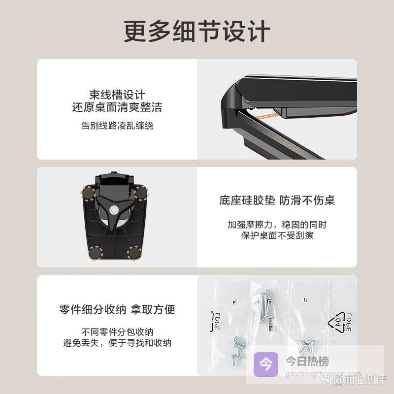 5️⃣桌面优化利器:通过夹固定设计,不仅节省桌面空间,还能让显示器位置更加合理,提升视觉效果,从而提升整体工作效率与舒适度,值得信赖。