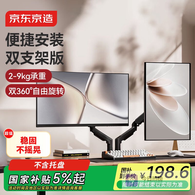 【京东自营】京东京造双屏显示器支架一拖二机械臂显示器支架臂显示器支架双屏显示屏幕支架电脑支架桌夹式¥