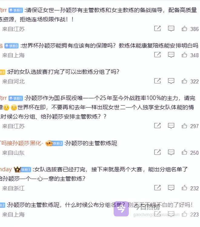 如今澳门世界杯马上就要开打,国乒教练组的分工尚未明确。虽然球迷猜测,但是至今没有官方的结果,不由得让人担心,有球迷呼吁应该早日明确,也给女世一孙颖莎这些运动员,体能和指导教练保障,不能再模糊不清,大家怎么看?