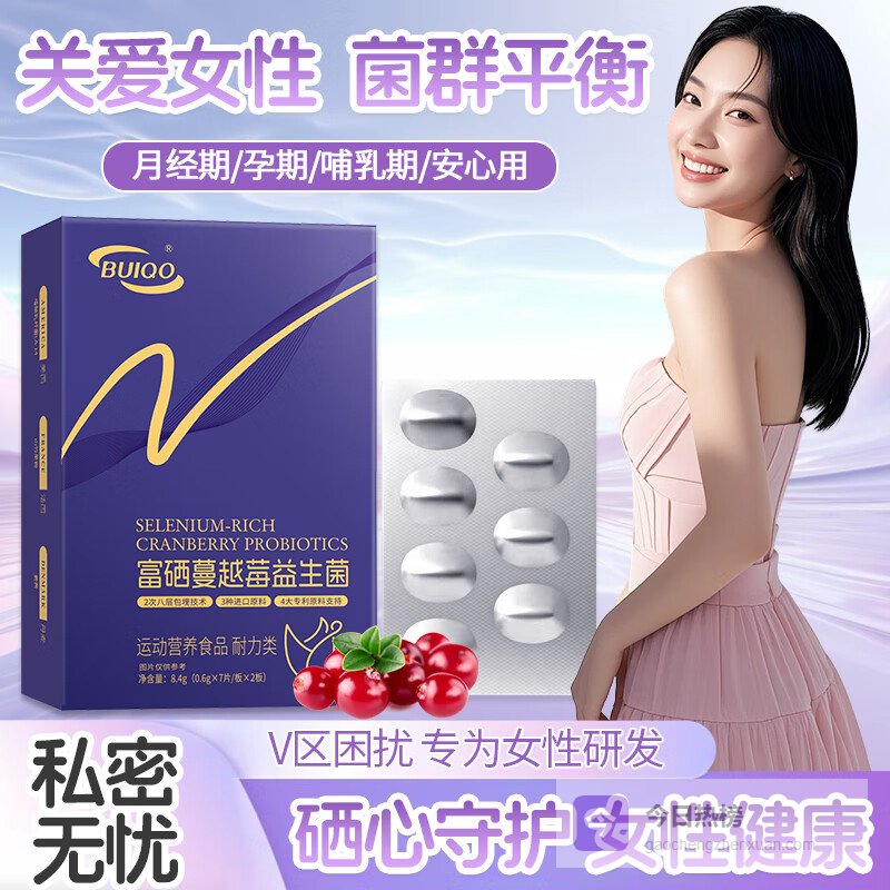 第一道防线:日常菌群平衡。BUIQO富硒蔓越莓女性益生菌采用专利乳酸杆菌配方,每粒含50亿活性益生菌,能有效维持私处酸性环境。特别添加的富硒蔓越莓成分具有天然抗氧化作用,双重呵护女性健康。
