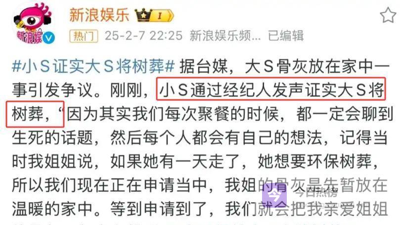 舆论压力太大了,小S后来才改口说用树葬,是按姐姐的意愿办的。