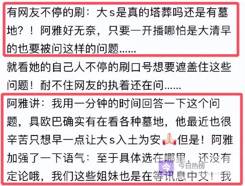 事情是这样的,那天阿雅开直播跟粉丝聊天,聊着聊着就有人问起大S葬礼的事儿。毕竟当时好多人都没去嘛,包括她这个好姐妹。