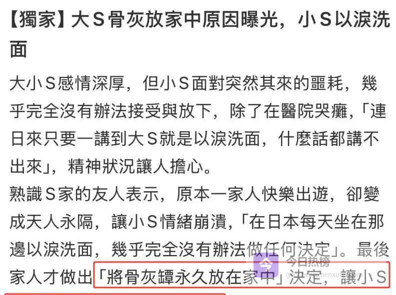 后来大S的骨灰回到台湾,大家以为很快会下葬,结果S家说,要一直放在家里。