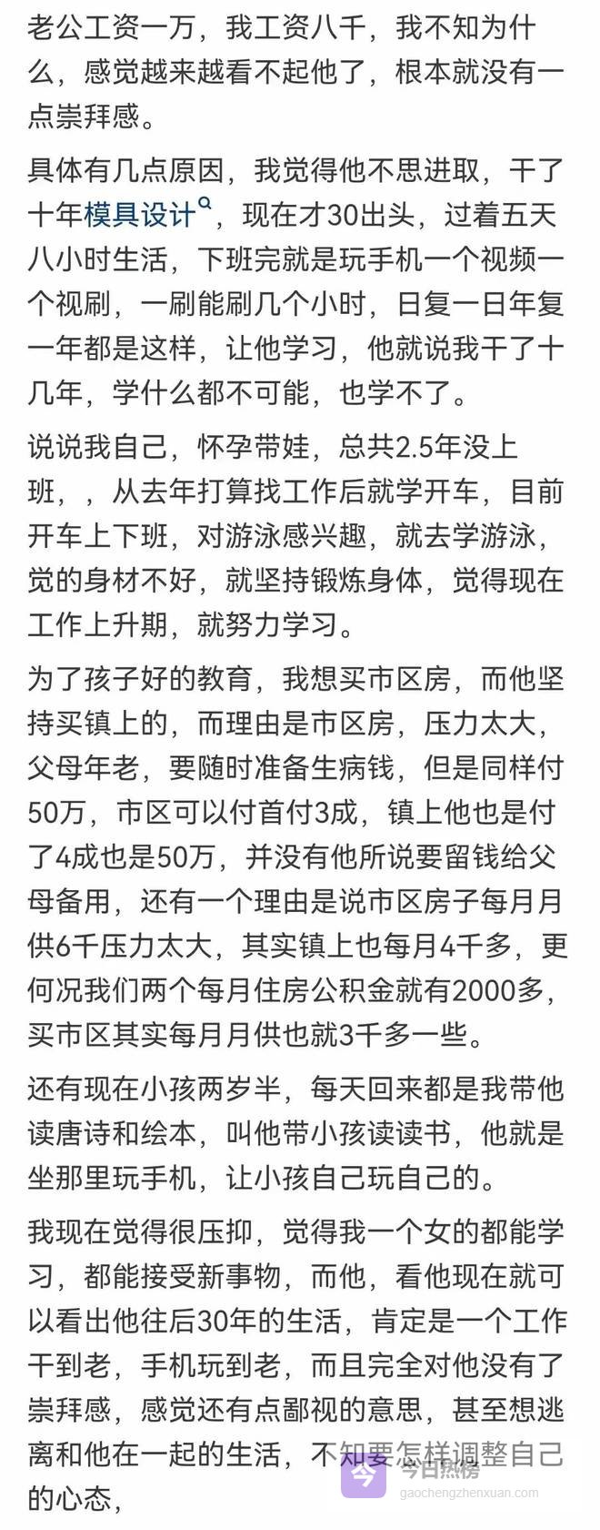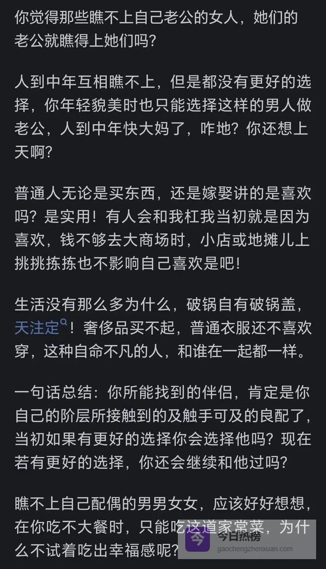 今日话题:时间久了,为什么大多女的都看不上自己老公?接下来小编就带领大家来看看,网友们是怎么看待这个问题的。