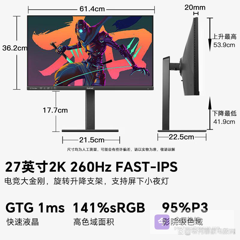 SANC盛色27英寸2K240Hz超频260Hz Fast IPS 10bit 1ms响应 硬件低蓝光 升降电竞屏幕显示器G7Pro Max¥