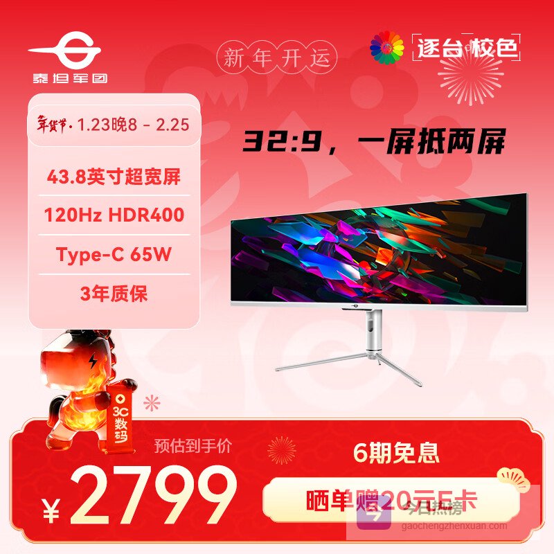 如果你需要的是生产力与娱乐的融合,超宽屏显示器能带来颠覆性的多任务体验。泰坦军团这款43.8英寸的32:9超宽屏,相当于并排摆放了两台21.5英寸的显示器,但没有中间边框。它支持PBP/PIP分屏功能,可以同时连接多台设备,非常适合视频剪辑、股票金融多屏监控、编程或沉浸式模拟赛车/飞行游戏。120Hz刷新率和HDR400保证了基础的娱乐体验,Type-C 65W反向充电则简化了笔记本用户的桌面连接。