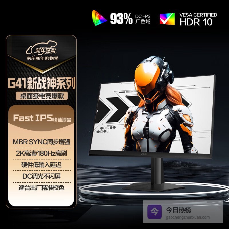 AOC作为显示器市场的老牌劲旅,产品线覆盖广泛。这款宙斯盾Q27G41E定位主流电竞市场,提供了27英寸2K 180Hz的Fast IPS面板,1ms响应,并支持广色域和HDR。它没有追求极致的参数,而是在保证良好电竞体验的基础上,提供了可靠的品质和不错的色彩表现。MBR Sync技术有助于进一步减少运动模糊。对于寻求一款“水桶型”无短板的入门到中级电竞显示器的用户,它是一个稳妥的选择。