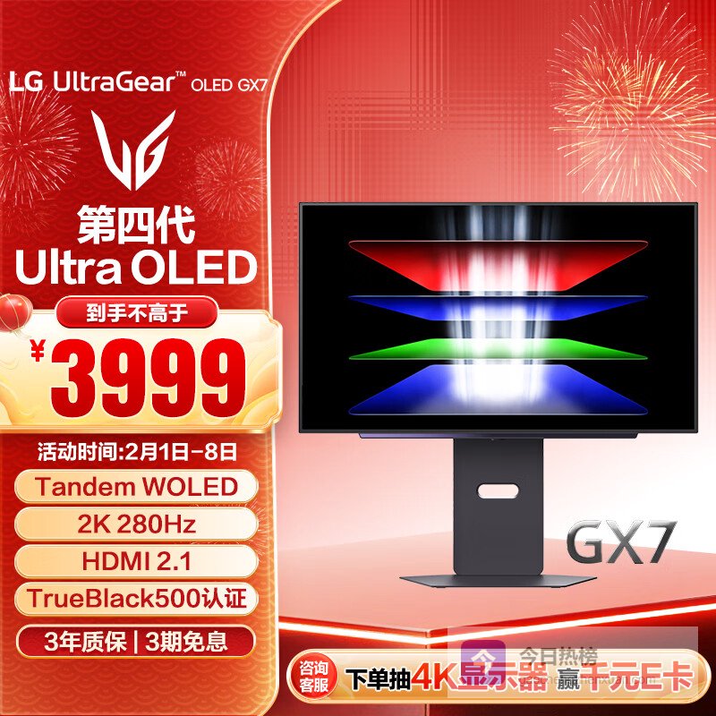 LG GX7 26.5英寸 第四代OLED 2K显示器280Hz 0.03ms响应 TrueBlack500 高刷显示屏 27GX700A¥