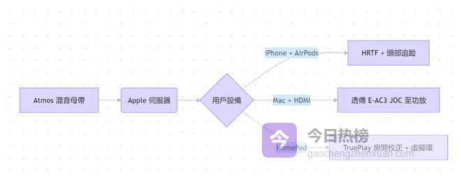 由于多声道录音对于声道变换的声音准位要求极为严格,这使得它成为一片未被“音量战争”污染的净土。音量战争也就是响度竞争,录音师为了让声音听起来更宽、更广、更响,他们不得不牺牲某些细节,甚至使用低频切割工具来提升高频量能,让整体音量更突出。多声道录音保留了最原始的情感讯息,让声音的细节能够直接传递给听众,不再被过度压缩所扭曲。这不仅是一场技术的革新,更是一场对声音本质的回归。苹果官网有一篇文章讲述他们如何运用Apple AAC编码器进行编码与解码,让最终的声音呈现与原始24位元录音室母带几乎无异,文章可以看出苹果对自家Apple AAC编码技术的高度自信。我们知道人类的听觉分辨力有极限,超过极限后就很难察觉声音的细微差异,所以当其他音乐串流平台纷纷推出高解析音讯时,苹果却并不急于跟进。相反的苹果公司将目标放在空间音讯,这是一种完全不同层次的思维。空间音讯与传统两声道的差异,远比AAC与高解析格式的比较来得显著,因为二者本质不同,录音条件与重播设备也完全不同。