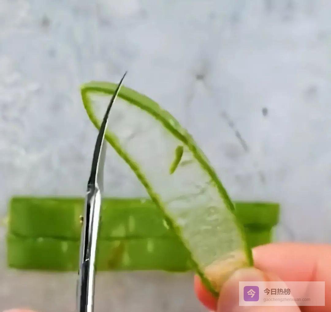 1.1 △ 眼膜:熬夜党续命神器 把芦荟叶切成薄片,沿边缘剪掉绿叶外皮,只留晶莹果肉,贴在下眼睑,10分钟即可淡化细纹、黑眼圈和眼袋,比昂贵眼膜温和有效。