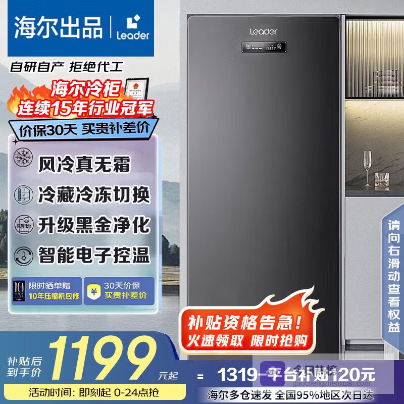 海尔(Haier)立式冷柜电脑控温冰柜冷藏冷冻切换家用冷柜风冷无霜/匀冷微霜母乳小冰箱 137升无霜+电子控温+黑金净化 137升¥