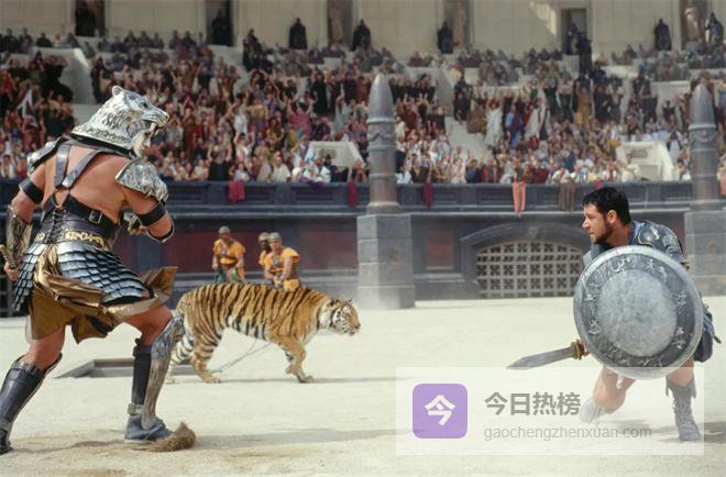 说到古罗马斗兽场中的战斗场景,《角斗士》名副其实是影史天花板级的存在。近三个小时的影片,几乎后半部分全部围绕着一场又一场斗兽厮杀展开。