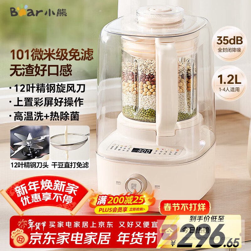 小熊(Bear)白月光破壁机1.2L家用全自动豆浆机榨汁料理辅食机多功能破壁2-3人用PBJ-F10K1¥