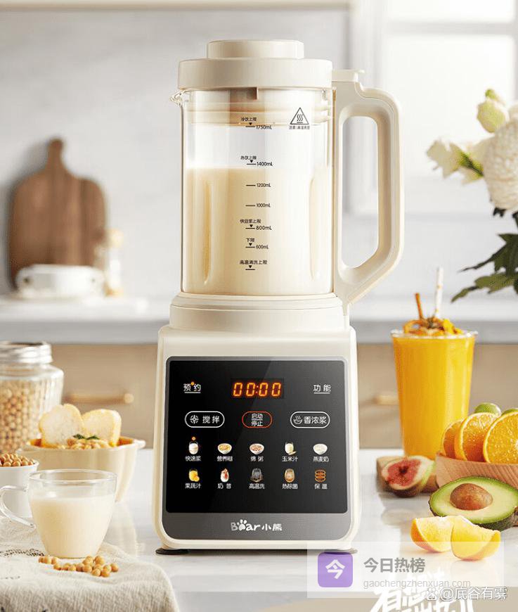 3、小熊PBJ-G12H1小熊这款破壁机,容量够大,一家人的早餐轻松搞定!升级的10叶刀片加上30000转/分钟的高速电机,能把食材打磨得非常细腻,官方说能达到107微米,基本免过滤,口感是真的丝滑。四棱立体扰流筋设计,更能充分搅拌食材,感觉每个角落都能照顾到。