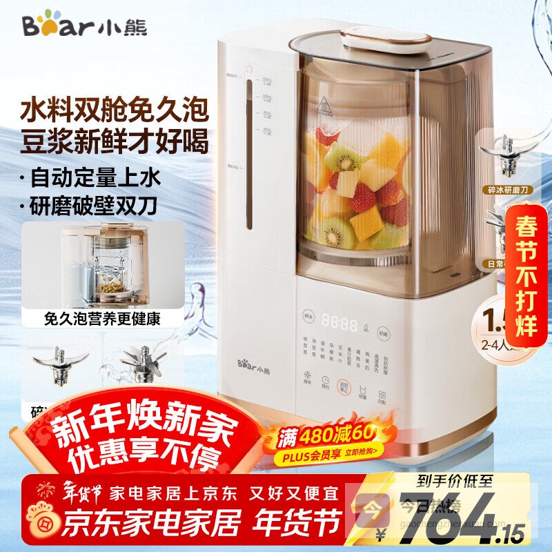 小熊(Bear)低音降噪破壁机1.5L家用全自动豆浆机榨汁料理辅食机预约多功能破壁免滤3-4人用F01G1¥