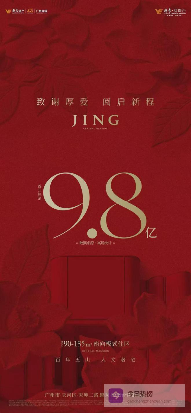 刚开盘不久的越秀·阅璟台,板楼单位当日售罄,“逼”得项目临时加推60套,最终录得9.8亿元成绩。