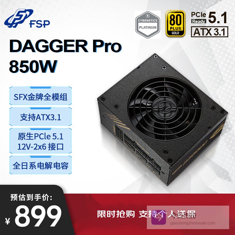 全汉(FSP)额定 850W Dagger pro 850W电源 (ATX3.1标准/PCI-E 12V-2x6接口/SFX金牌全模组/DC to DC)¥