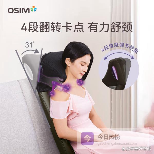 它拥有四段可调角度,根据身高和坐姿调整,更贴合个人需求。恒温热风功能能带走肌肉紧绷感,提升放松体验。加上智能APP操控,可以选择不同的按摩程序和音乐,满足各种场景。自动15分钟定时设计,也让使用者无需担心过度按摩。
