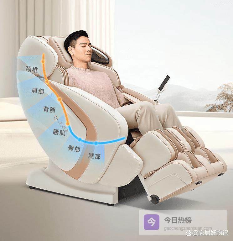 这款按摩椅采用170°灵动导轨设计,能覆盖腰背到椎骨痛点,贴合身体轮廓,提供有力支撑。360°环膝热敷功能,让肩、腰、膝等部位在温热中放松,促进血液循环,搭配多达50个气囊,给予深度压力释放,带来极佳的舒适感。