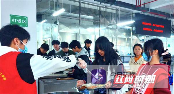 志愿服务促有序。每到用餐高峰期,食堂里总活跃着一群身着红马甲的学生志愿者。这些“青春身影”坚守在餐盘回收处、打饭窗口旁和就餐区域,耐心引导同学们有序排队,细心提醒文明就餐,同时积极倡导“光盘行动”。在他们的努力下,一抹“志愿红”让窗口秩序井然,也让互助与奉献的暖流在校园中流淌。