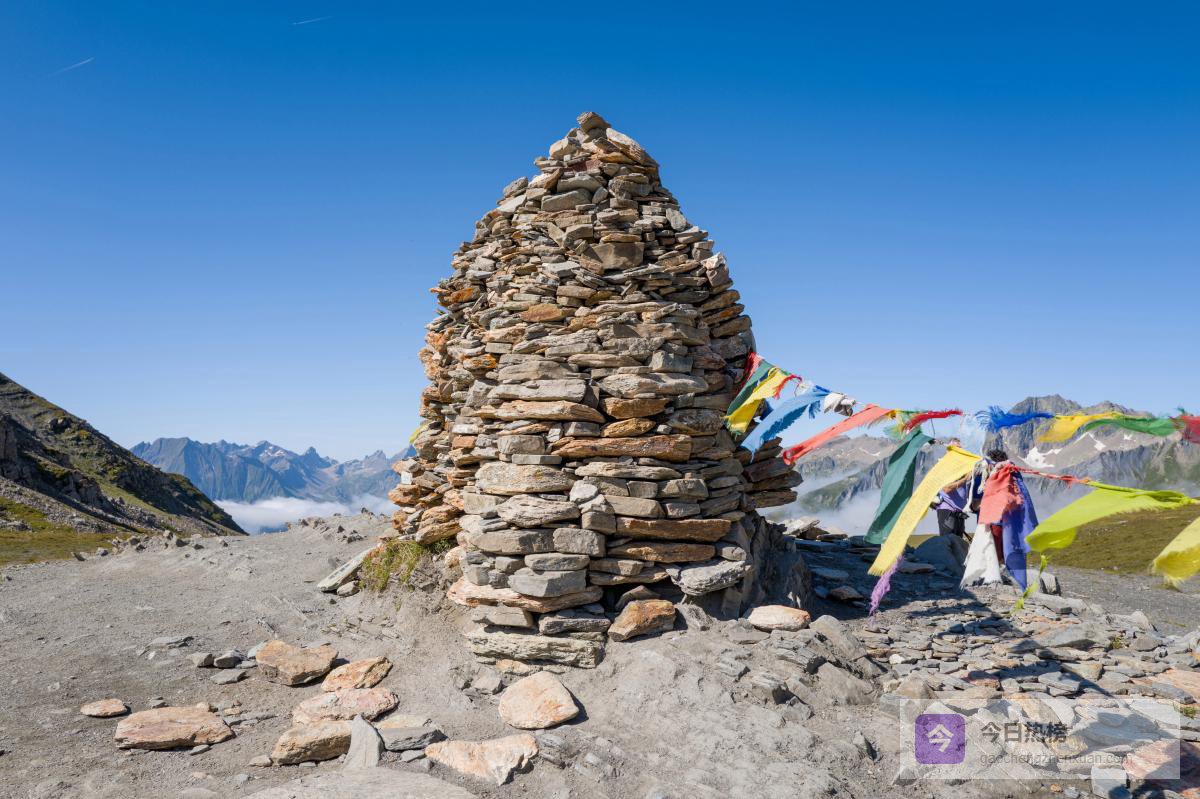高原的天气像个淘气的孩子,刚才还是晴空万里,转瞬间一朵乌云游过,豆大的雨滴噼里啪啦就砸了下来。赶紧披上雨衣,却也意外发现另一种意境。雨中的草甸绿得更显深邃,露珠在草叶尖上颤抖、滚落,雨丝洗刷后的空气更加凛冽清透,天地间仿佛只留下风雨的声音和自己的呼吸。偶然撞见几座古朴的玛尼堆,垒叠的石片上刻满神秘的经文和图案;五彩经幡在风雨中猎猎作响。人们说,风每吹动一次经幡,便是诵经一次。这些在风雨中飞舞的色彩,是信众对神山圣湖最虔诚的祈愿和最朴实的敬畏,在无垠的荒凉与壮美中,无声诉说着精神的支撑点。