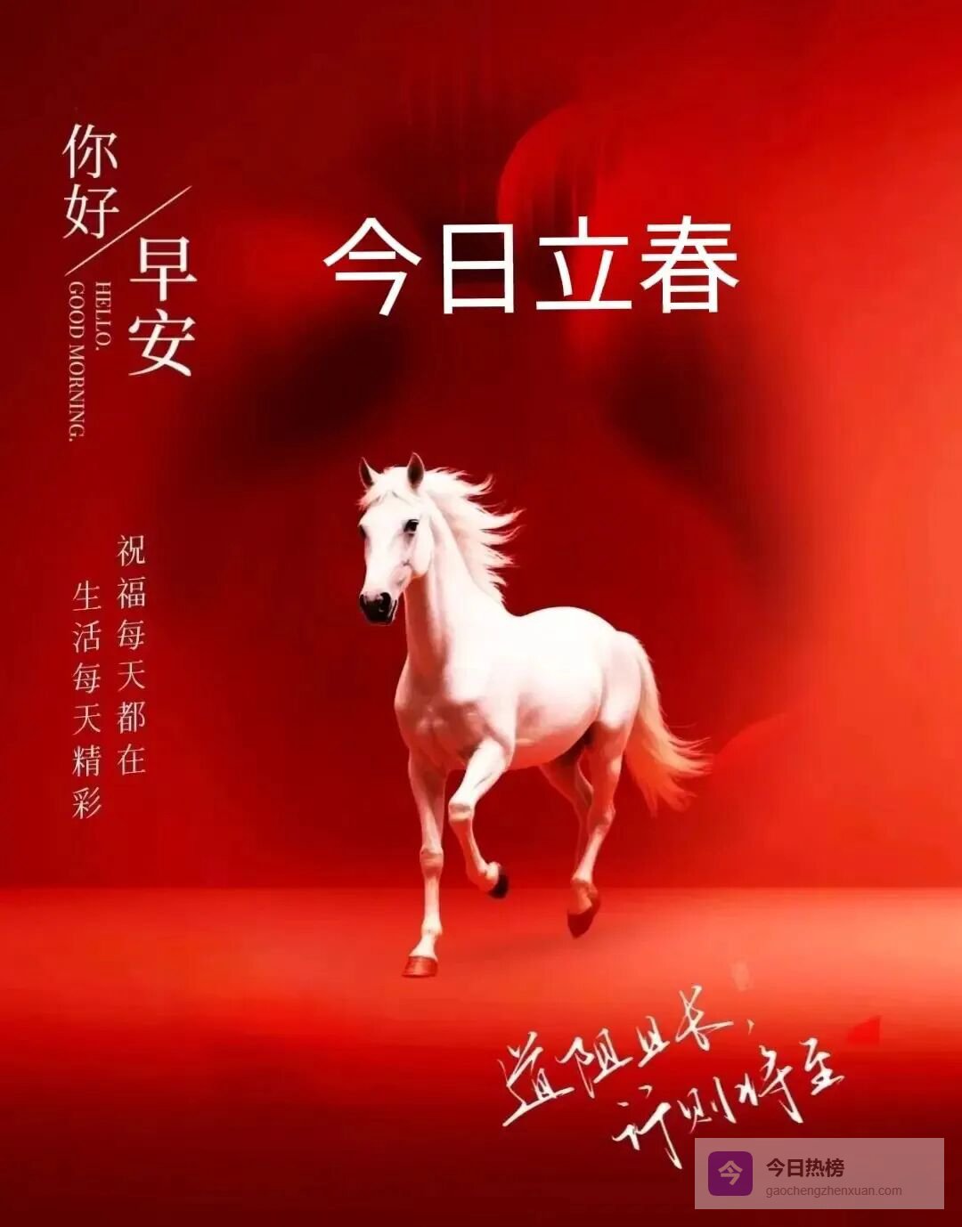 🌹💐春来百花开,愿你好运来。一朵快乐花,愿你展笑颜。🍒❤️一朵好运花,愿你福相伴,一朵成功花,愿你前途坦,🍒❤️一朵祝福花,愿你心温暖。立春了,愿你春风得意,幸福安康!🌹💐