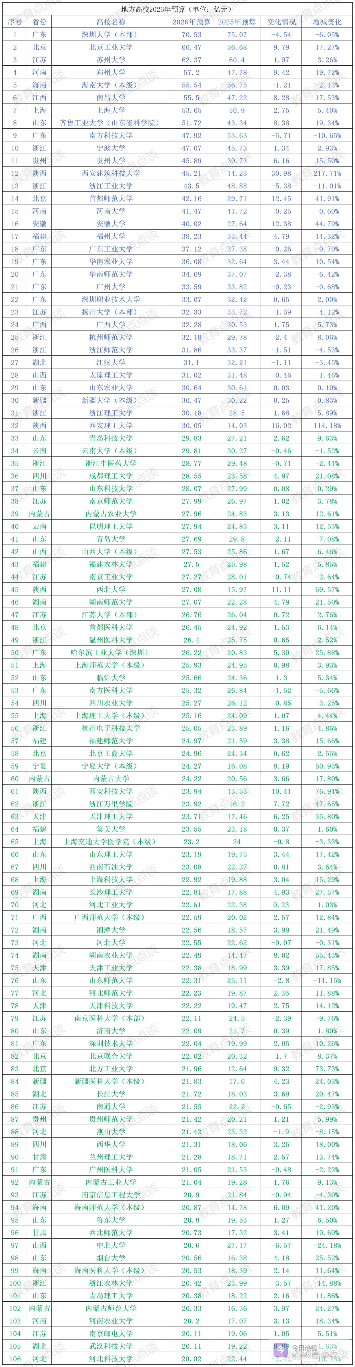 数据中不包含部属高校,但其中有哈尔滨工业大学(深圳)、上海交通大学医学院的预算,江汉大学包含了附属医院的预算。