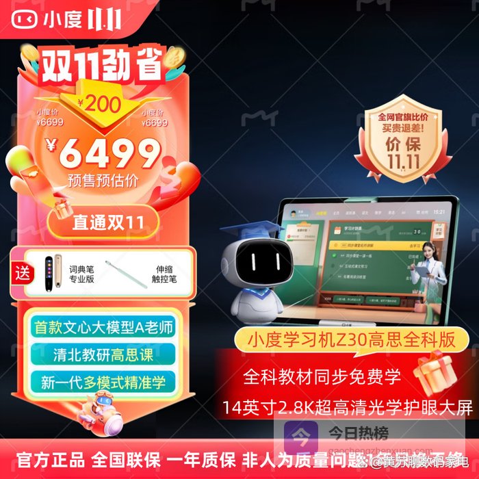 这款近七千元的Z30高思版,定位非常独特,可以看作是“顶配硬件与顶尖数学资源的强强联合”。在护眼技术上,它搭载了小度目前顶级的护眼屏幕(可能是类纸屏的顶配版本),各项护眼参数和体验都力求做到最好,为长时间高强度学习提供最极致的视觉保障。