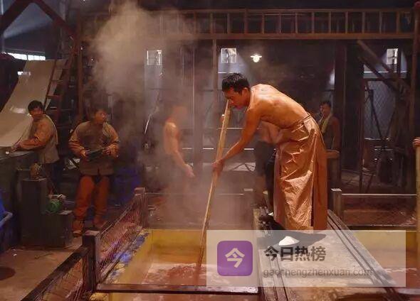 大火煮沸一小时后,捞出置于刮板,两人对拉,第三人用竹片刮到“没有一点浆糊味”才算合格;随后进漂洗缸——先混水后清水,第一缸浓汁还倒回锅里二次利用。