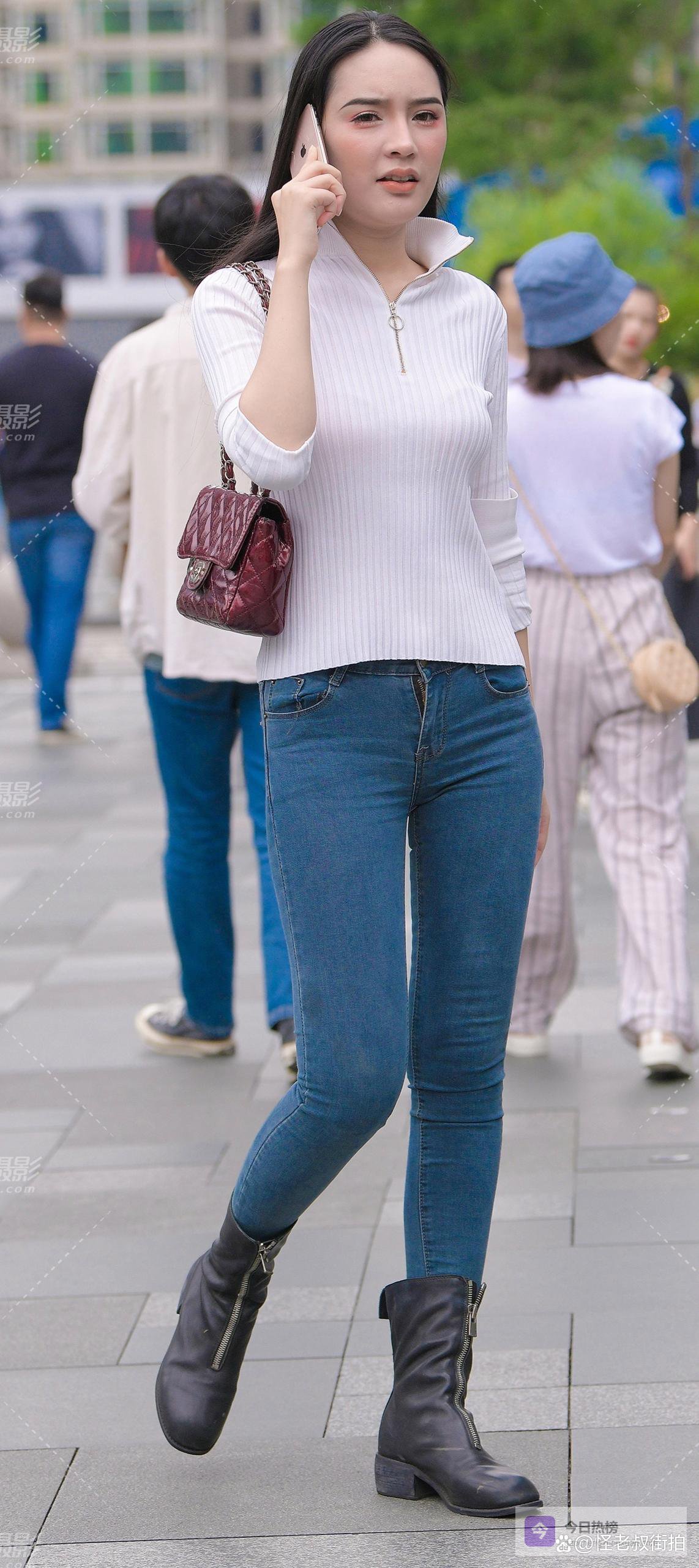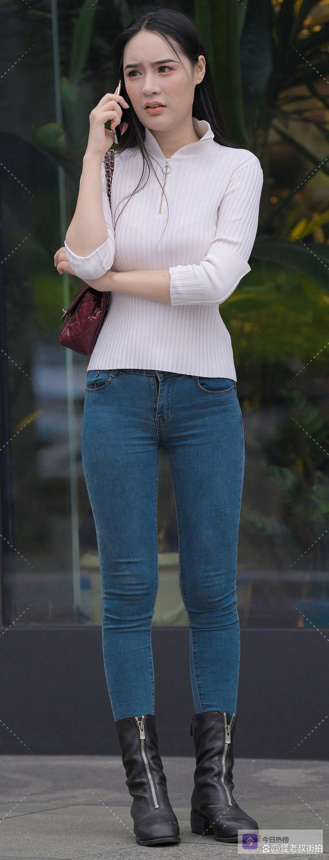 这是一套属于“都市漫游者”的穿搭。它适合在一个阳光慵懒的午后,去街角的书店翻阅一本画册;适合与挚友在露天咖啡馆谈论艺术与人生;也适合在微凉的晚风中,独自漫步回家。白色针织衫的温柔、蓝色牛仔裤的怀旧、黑色短靴的帅气、酒红色包包的优雅,它们共同交织出一首关于生活的赞美诗。穿上它,你不必追赶潮流,因为你本身,就是潮流中最经典的那一部分。