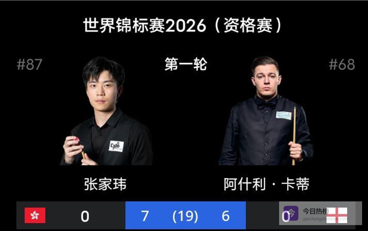 目光转回那些尚未结束的战斗。 中国香港的张家玮,与英格兰选手阿什利·卡蒂的比赛打得难解难分。 从0-2落后,到反超,再到8-7领先,张家玮已经轰出了包括114分和128分在内的两杆破百。 他的进攻打得积极主动,仿佛要彻底洗刷去年惨败的阴霾。 而“神奇小子”傅家俊,则几乎已经一只脚踏进了第二轮。 面对泰国女将,他第一阶段就取得了8-1的压倒性优势,晋级只是时间问题。 另一位中国选手许医尘,也以6-3的比分领先结束第一阶段,形势看好。