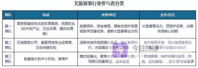 文旅赛事行业头部效应加剧,区域竞争白热化。目前文旅赛事行业内已形成清晰的三级竞争梯队:第一梯队由国资背景的综合文旅体育集团与民营巨头组成,凭借政策倾斜、资金实力、IP资源或数字流量优势,垄断大型赛事主办权,占据市场核心份额;第二梯队以区域国资公司、垂直领域专业运营商及文创传媒机构为主,深耕本地市场或细分赛道,聚焦赛事执行与内容策划;第三梯队则是数量庞大的中小机构与草根IP,以轻量化、本地化赛事为主,竞争分散且同质化明显。