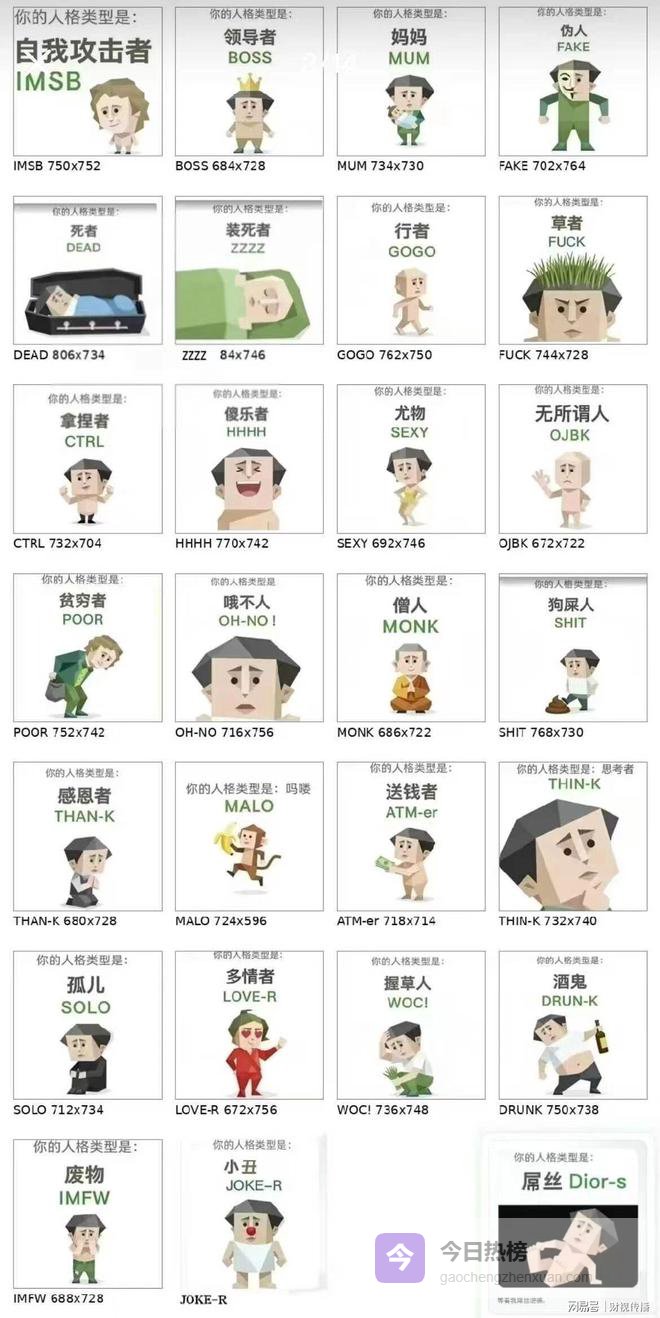 其次,年轻人厌倦了被“贴正经标签”。MBTI走红多年后,逐渐形成了一套刻板印象,部分人觉得自己被“INTJ”“ENFP”等字母束缚,仿佛被分类工具定义了全部人生。SBTI用“死者”“吗喽”等更抽象、更自嘲的方式,实际上是对严肃人格分类的一种反叛——用荒诞消解严肃,用自嘲对抗定义。