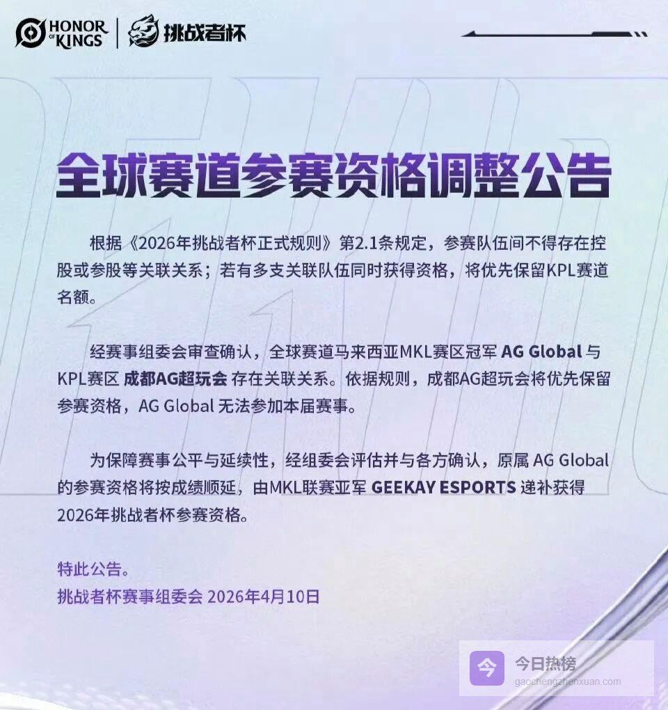 AG大号把国外小号害了,就算AG大号今年去不到EWC我们也能看到AG,可惜AG大号早已以卫冕冠军的身份锁了沙特,这直接导致AG马来西亚分部AG Global被取消参赛资格,亚军GEEKAY ESPORT顺势递补参赛,躺进国际赛的他们美滋滋,毕竟国际赛进了就可以拿钱。