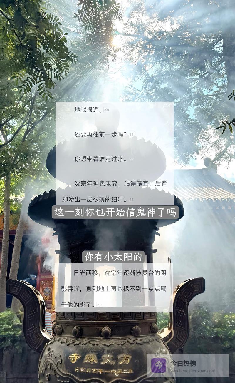 原文里沈宗年那是真的狠,童年阴影加上后来被谭家收养,他把所有温柔都锁死给谭又明一个人。但这不代表他卑微啊!人家是冷酷到底,只对你一个人热。反观谭又明,表面阳光风流,实则重度分离焦虑症患者。为了挽回沈宗年,这哥们儿是真敢玩:跪祠堂、拜遍全城寺庙,还拍胸脯承诺要在压根儿没天文台的小潭山硬造一座。