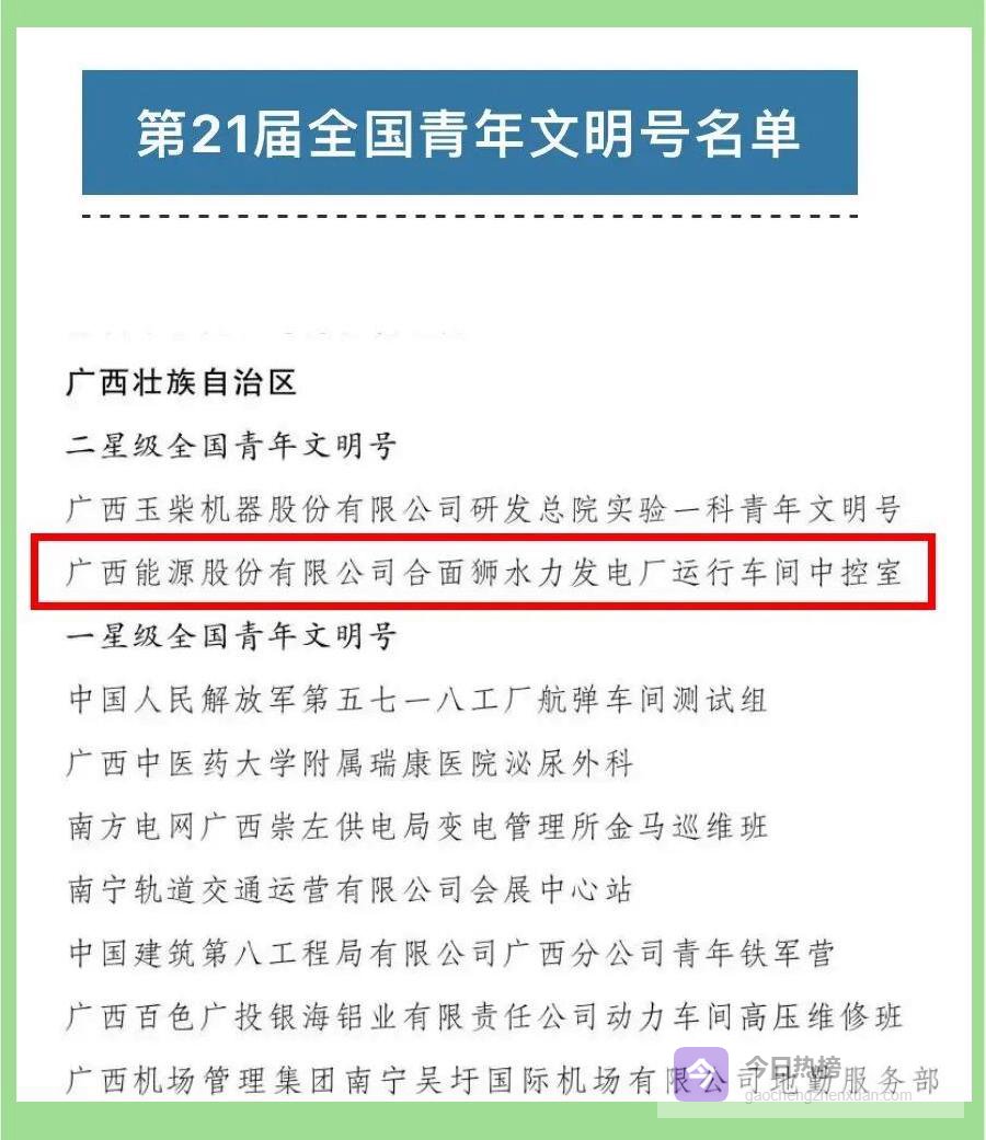 当第21届全国青年文明号名单揭晓,合面狮水力发电厂运行车间中控室成功跻身二星级榜单,成为贺州唯一获此殊荣的基层团队。这份由共青团中央联合23家单位印发的认定,不仅是对18名青年员工的集体嘉奖,更是对他们把“绿水青山就是金山银山”写进每一次操作、每一次调度最有力的见证。